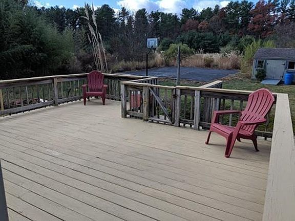 Well Built 1985 Cape style house with excellent layout, 3 bedrooms, 2 bathrooms, and a full basement with covered walkout access to the back yard. Freshly refinished hardwood floors throughout first floor, and brand new carpeting upstairs, plus painter is now working on freshly painting most of the interior of the home with modern colors. New Oil Heat Boiler installed in 2016. All Windows, Vinyl Siding, and Roof were replaced in 2002. Very large 2.65 acre lot extends back and far to the right measuring over 300' by 300'. Spacious front and back yards include a big shed and basketball court and space for an above ground pool. Substantial landscaping in place and the owner used to have a raised pool with the good size back deck.