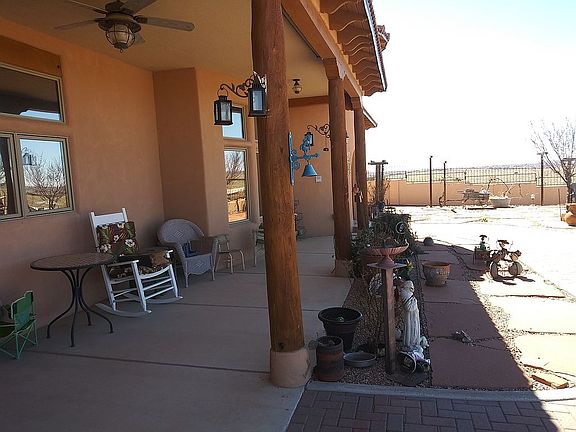 Our home is a custom built home that features panoramic views of the Sandias and our surrounding neighborhood from the back yard . From the front one gets a great view of the open desert. This gorgeous home sits on a one acre lot. There are granite countertops in the kitchen and all the bathrooms. additionally, the kitchen is meant for entertaining with double ovens, double dishwashers and a large pantry. The formal dining area is a singe serving window away while also providing for a private dining experience. the home has radiant heating as well as two large combo HVAC units on the roof. As for utilities, the house has natural gas for cooktop, boiler for the radiant heating, and water heater. The house is equipped with 24 SUNPOWER solar panels capable of generating more than 12,000 kilowatt hours of electricity per year. We have had no electric bill for 5 years. The house is fully fenced with an electric APOLLO gate system. This residence includes many fruit trees, including peach, apricot, pear, apple, fig, nectarine, apple and cherry, pomegranate and a recently planted persimmon. There is a small garden area that is completely fenced to ward off dogs and birds. This is a complete package and well located with a lot of privacy without being isolated. Walmart one mile, cinema one mile, Rust medical 2 miles, Maggie Cordova one mile, Cottonwood Mall 4 miles, Southern Ave .5 miles, Lowes 5 miles in 2 different directions and Smiths about 4 miles down Southern.