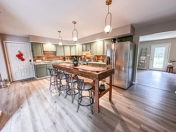 With many new upgrades over the last couple of years, this ranch style home sits on a large lot with many outbuildings to accommodate for ALL of your hobbies! The main house, has a large kitchen and living room that are both full of natural light. With an Adirondack room accented by a cozy wood stove (great supplemental heat source), that leads to a large back deck, hot tub, and outdoor shower area! The primary bedroom has an en-suite and two full size closets. There is a large 2 car heated garage that makes it easy to work in all year round! Sitting on the 2 acre lot, there is a detached 3 bay garage, rental cottage, and a full size barn. Inside the barn there is a fully functioning kitchen, bathroom and shower. If you do not want to use this space for entertainment, the back wall has a large barn door that swings open so you can park a boat right inside for winter storage or for getting large items in and out with ease! The cottage out front currently has a full time renter who is clean, respectful, and pays on time. This is a one bedroom, one bathroom apartment, and has great tongue and groove through the entire kitchen and living room area! The two acre lot is large enough to enjoy outdoor games, park an RV, garden, or just enjoy some time outside! The primary heating source for both houses is natural gas. Generator hook up in the main house. Just minutes from town, and has everything you need!