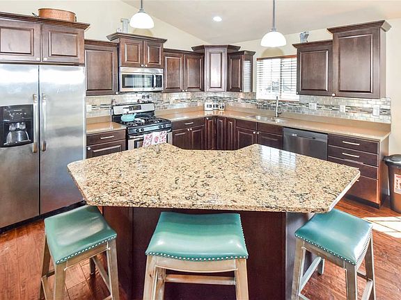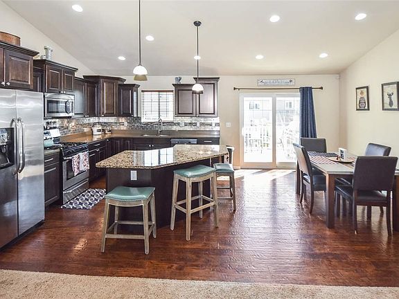 Move-in Ready! This one owner home has been well maintained and cared for and has many upgrades above the standard builder grade. The main floor of the home offers an open concept with vaulted ceilings and engineered hardwood floors in the kitchen and dining areas. The kitchen boasts dark cabinetry, quartz counter tops, tile backsplash, stainless steel appliances including a gas range and an eat-at island. Just off the kitchen is the dining room with sliding door that leads to the deck and fenced backyard. The master bedroom offers a tray ceiling, en-suite with tiled shower and two shower heads and a generously sized walk-in closet. One more bedroom and another full bathroom round out the main floor. In the lower level you will find a large family room that includes a projector, movie screen and built-in speakers that all stay with the home. Two more bedrooms, a full bathroom with heated tile floors and jet tub and a laundry room complete the lower level. The backyard is perfect for entertaining and is extensively landscaped. The stone patio and custom fire pit area are perfect for making memories on summer nights. Call a REALTOR® to see for yourself all the details this home has to offer.
