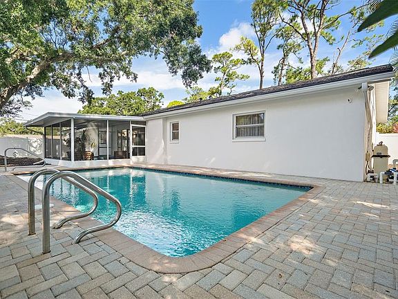 Welcome to this rare St. Petersburg pool home where timeless Old Florida charm meets modern upgrades and efficiency. This 3-bedroom, 2-bath residence offers nearly 1,600 sq ft of inviting living space with both family and living rooms, a screened porch, and a sparkling pool perfect for year-round enjoyment. Step inside to appreciate the character of original plaster walls and a vintage cast-iron sink, paired with thoughtful updates like custom closets and expanded storage. Recent major improvements include a new roof (2025), complete re-plumbing (2023), new electrical panel and wiring (2022), energy-efficient HVAC, exterior unit is electric, interior furnace is gas (2021), attic spray-foam insulation, and hurricane-ready features including a Category 5 garage door, shutters, and upgraded windows. A pool pump with transferable warranty adds peace of mind. This home runs on both electric and natural gas, dramatically lowering utility costs with the AC, water heater, and range powered by gas instead of central electric. A licensed arborist has also certified the property’s mature trees as sound, complementing the lush yard and adding to the serene setting. Located minutes from Downtown St. Petersburg, Tampa, and award-winning Gulf beaches, this home offers unmatched convenience without sacrificing character. If you’ve been searching for a property that blends historic charm with modern efficiency and lifestyle upgrades, this is it.