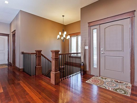 ELEGANT CUSTOM BUILT HOME SHOWS THE WARMTH OF DETAILED CONSTRUCTION WITH GEOTHERMAL.BRAZILIAN CHERRY WOOD FLOOR, ARCHWAY TO LR & EXQUISITE STAIRWAY WITH WROUGHT IRON RAIL WELCOMES YOU IN THE FOYER ENTRANCE. NOTICE THE WOOD TRIM AND BUILTINS THROUGHOUT THE HOME. 10' CEILING, GAS 2 WAY FIREPLACE & SURROUND SOUND ENHANCES THE SPACIOUS LIVING ROOM. AMPLE GRANITE COUNTER WITH U, STAINLESS APPLIANCES,UNDERMOUNT SINK, ABUNDANT UPGRADED CABINETS, BACK SPLASH AND CENTER ISLAND ACCENTS THIS GORGEOUS KITCHEN. ADJACENT NOOK OFFERS SLIDING GLASS DOORS TO COVERED DECK OVERLOOKING NICELY LANDSCAPED YARD WITH PARTIAL FENCING.MAIN FLOOR LAUNDRY ROOM WITH UTILITY SINK. MASTER BEDROOM IS ENHANCED WITH TRAY CEILING & FEATURES GARDENTUB/JACUZZI IN MASTER BATH. JACK & JILL BATH IS BETWEEN BR 2 & 3. BE IMPRESSED WITH THE LARGE LOWER LEVEL REC ROOM WITH BUILTINS,WET BAR,2 BR & BATH.HUGE 1313 SQ FT GARAGE WITH HEAT,SINK,HOT & COLD WATER & DRAIN