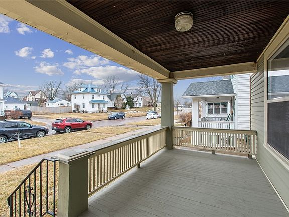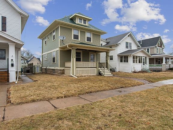 Beautiful 2 story home with numerous updates and conveniently located near downtown and HyVee. You will love the open feel of the main level which includes a large living room, formal dining room with gorgeous stained glass and original trim and an updated kitchen. The second floor offers three bedrooms, a full, updated bathroom and numerous original built-ins for ample storage. A spacious full attic provides even more storage. Recent updates include new AC unit (2020), roof (2022), siding (2022), water heater (2023) A third, parking space is located adjacent the detached two-stall garage. The basement provides a workspace for your projects, plumbing for a second full bath and even more storage. The backyard includes a limestone patio and privacy fence on all sides for when you want some privacy, while the recently re-painted front porch is a great place to meet your new neighbors!