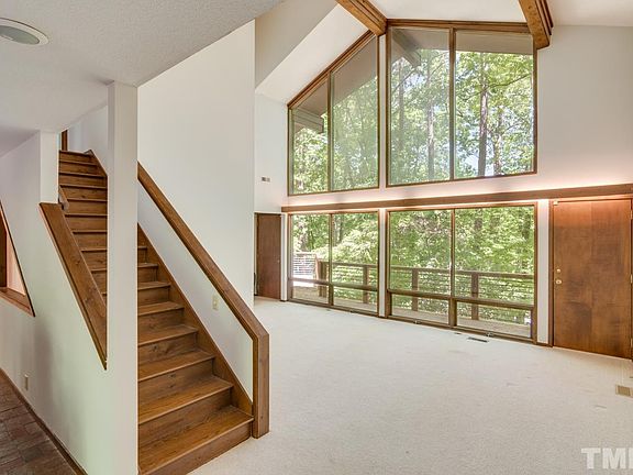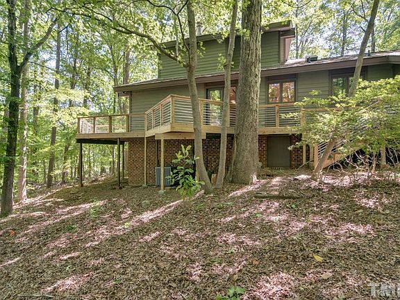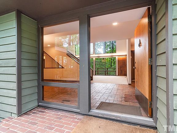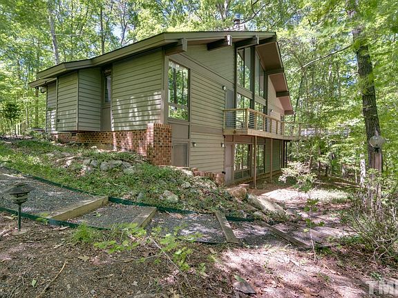 A Modernist Home custom designed by architect Sumner Winn. Surrounded by trees on 1+ acre. From the front door the view of treetops from Wall of windows in the living room welcome you. Red brick flooring in the dining room. The updated kitchen has stainless appliances and wonderful center isle. The deck that surrounds 2 sides. Lower level has a separate entrance that allows for In-law suite or au pair. Minutes from UNC, downtown Chapel Hill. Easy access to I40 and Duke, too!