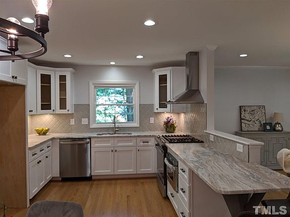 INCREDIBLE find in West Raleigh. Total professional rehab in and out. Open floorplan, everything new in kitchen, including microwave drawer and modern hood. Updated baths. New lighting and hardware throughout. Looks like a magazine inside! Work permitted and on file by an HGTV featured remodeler. Hardwood floors on main and upper level. Modern touches on this classic split level plan. Roof <5 yrs old. Quiet street. Walk to popular Kentwood Park. Be sure to see the Virtual Tour!