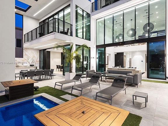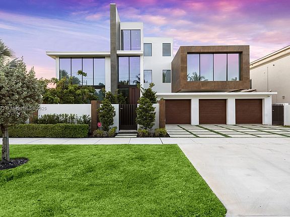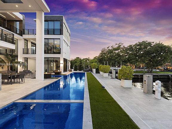 This Captivating luxury South Florida mansion is the ultimate home for a large family or couple who love to entertain. This tri-level modern masterpiece boasts 7 bedrooms, 9 bathrooms, 56ft pool with spa, putting green, half-court basketball, state-of-the-art media room with a bar and pool table. 90ft of waterfrontage completes this offering, perfect for jet skies, or a mid size yacht. Call list agent for exclusive showings.