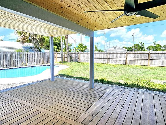 Welcome to this beautifully renovated home located in the River Community of desirable, Banana River Drive. This Merritt Island home sits on a peaceful, dead-end street. Charming property offers tranquility and modern luxury. Relax in your own private paradise with gorgeous, resurfaced pool cascading through the expansive back yard perfect of entertainment and leisure. 3 CAR GARAGE and additional Room for RV/BOAT! Custom wood decking and porch ceiling adds a warm comfortable outdoor space. No expense has been spared when viewing the elaborate upgrades. Open floor plan and spacious kitchen offers stunning black stone countertops, with all matching windowsills, upgraded industrial ceiling fans, new bathrooms, new roof, HVAC, and so much More. Value is here for insurance credits. Home is near all major roadways and area beaches. New Hospital construction has begun in addition to other current growth with shopping and dining on Merritt Island. Home neighbors A-rated Audubon Elementary!