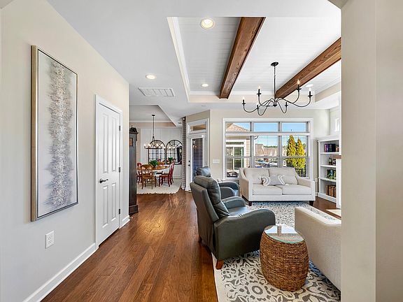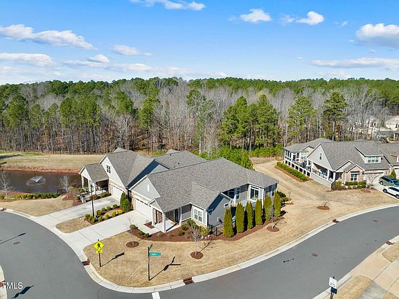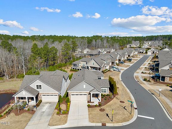Prominently positioned on a large corner lot in one of Cary's premiere active adult communities, this gorgeous BASEMENT residence exudes the essence of new and eliminates the need to wait for it. Upon entering, your attention is quickly captivated by the extensive millwork showcased throughout - from hardwood beams to paneled ceilings - all custom crafted for this home. The versatile open concept plan lures you into a gourmet kitchen adorned with quartz countertops, staggered white cabinets & stainless appliances. Find sanctuary in the secluded main floor primary offering a sun-drenched extension to utilize as a possible office, reading nook or meditation space. Comfort and convenience were top priority when creating a seamless-entry shower in the spa-like bath. Adding to its unique features - a lower level; infused with natural light and designed for extended entertaining as well as a serene retreat when accommodating guests. The unfinished ''bunker'' provides immense, easy-to-access storage. Indulge in all the neighborhood has to offer which includes, but is not limited to: weekly events, an exercise room, saltwater pool & beautifully appointed clubhouse. Considering The Streets at Southpoint Mall, breweries, shopping + dining, Apple's RTP hub & major highways are all easily accessible and only minutes away - the location cannot be beat! Welcome home!