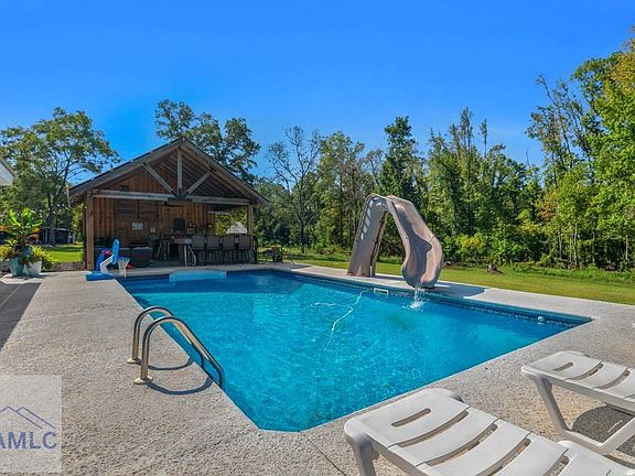 Rustic Charm Meets Modern Living – A 6-Acre Haven Awaits! Nestled on a sprawling 6-acre estate, this exceptional property is a harmonious blend of rustic charm and contemporary convenience. Renovated in 2021, the 6-bedroom, 2.5-bathroom this house boasts thoughtful upgrades, including a new roof, updated HVAC systems, and stylish design elements throughout. The open-concept kitchen and living area feature granite countertops, stainless steel appliances, a farmhouse sink, and a smart fridge with a built-in planner. A creative pantry under the staircase adds a functional yet whimsical touch, while wood beam accents and a shiplap ceiling infuse warmth and character. The main-level master suite is a sanctuary, offering dual walk-in closets, double sinks, and a luxurious double shower with a rain shower head. Upstairs, an open landing overlooks the living area, connecting four additional bedrooms, each outfitted with plush carpeting. New LVP flooring graces the main level, while decorative tile elevates the bathrooms. A tankless water heater, a spacious laundry room with counter-height counters, and a guest half-bath complete the interior. Step outside to a covered back patio that overlooks an in-ground pool with cool decking and a slide. Entertain in style at the outdoor kitchen while taking in views of the serene pond and landscaped grounds, which include a beach area for relaxation. Additional outdoor features include a dog pen with concrete flooring, a shelter and stalls, a chicken coop, and a working area. The long, shaded drive leads to the property, greeted by an open gate and a fully equipped workshop. The workshop boasts an electric roll-up door, a fully floored upstairs storage area, a man cave, and a lean-to for equipment storage. Bonus: The property includes a one-year lease on an adjoining 200-acre tract, perfect for hunting and recreation. This unique property offers unparalleled amenities and a lifestyle that's second to none. Don't miss your opportunity—contact your favorite REALTOR today!