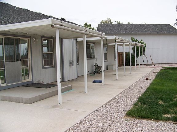 Attached 3 car garage plus a detached 22 x 42 motorhome garage (sellers will sell motor home separately). Home features include family room, living room with vaulted ceiling and pellet stove, formal dining plus eat-in kitchen with double convection ovens, cooktop and built-in microwave. Living rm, dining rm and family room feature beautiful hardwood flooring. Property is a fenced and landscaped half acre parcel with covered paitio and storage building. Water from community well (Old River Water Co).