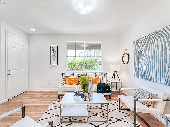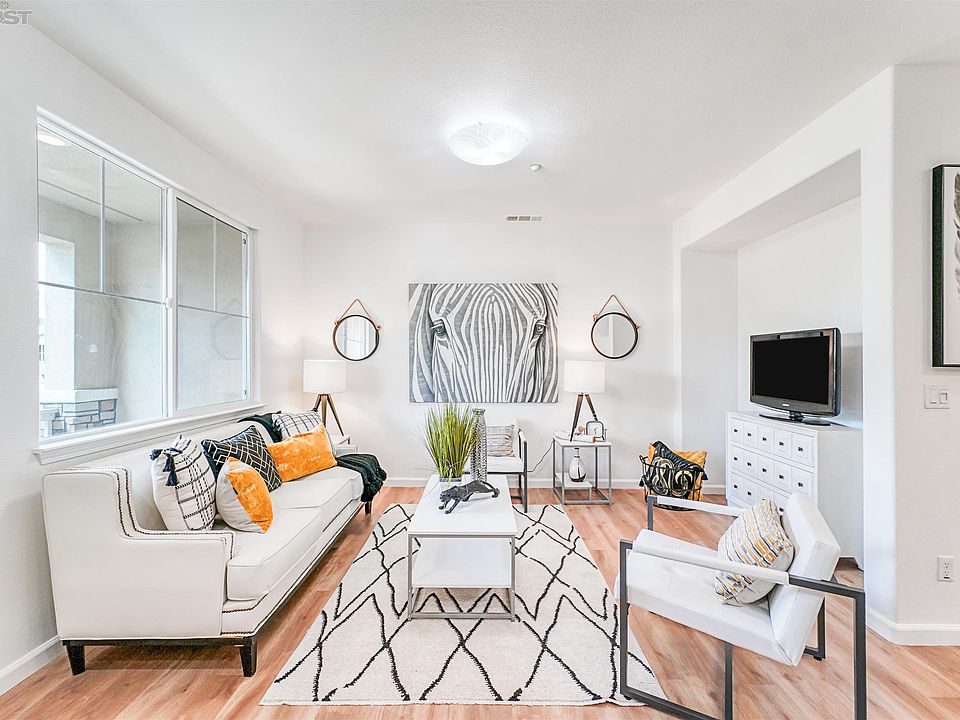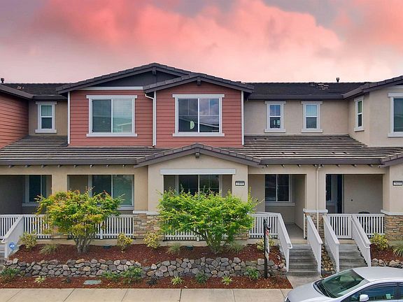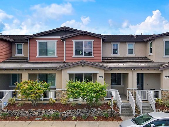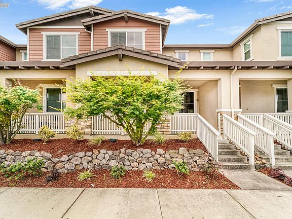 COMMUTER'S DREAM HOME! This 13 years young Village Walk Community is full of happy homeowners. Townhome style condo complex with EXTREMELY LOW TURNOVER makes this home a rare find. PLENTY OF GUEST PARKING. Experience comfortable living with a private, gated front porch leading your way into this open floorplan featuring 3 bedrooms 2.5 bathrooms. Elegant white quartz countertops and epicurean kitchen backsplash create a stylish contrast with natural wood cabinets, and charming wood patterned luxury vinyl flooring. Stainless steel appliances, including a functional GAS STOVE, tankless water heater, central AC, and heating. The modern kitchen island is perfect for entertaining or as a breakfast bar. The primary bedroom offers dual sink vanity, a walk-in closet, a relaxing soaking tub, and an oversized shower. Fresh interior paint throughout and new carpet on the second level. Two spacious guest bedrooms are conveniently located outside the designated laundry room with extra storage cabinets for towels and linens. Two-car, side-by-side garage, well-managed HOA. Nearby shopping, dining, parks, freeway access & both Elementary/Middle/High Schools. LOW HOA, NO RENTAL RESTRICTIONS.