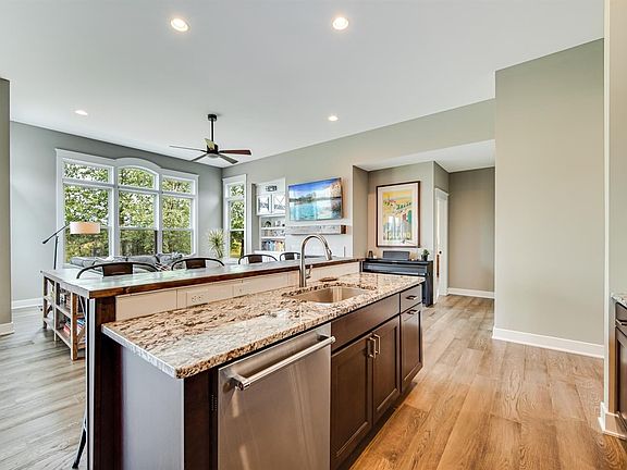 Immaculate 4 bedroom 3 bath ranch in Brassie Estates. Open spaces beautifully decorated. Truly move in ready. Bathed in natural sunlight. Engineered hard wood floors throughout the main floor. 11' ceilings in the living, dining, kitchen area with large windows. Split bedroom floor plan with master suite near living area and other 2 main floor bedrooms at other end of house. Downstairs find a mostly finished daylight basement with the 4th bedroom and a full bath. There is a large unfinished room great for storage or personalize to your liking. The backyard features a large trex deck which connects to a paver patio.