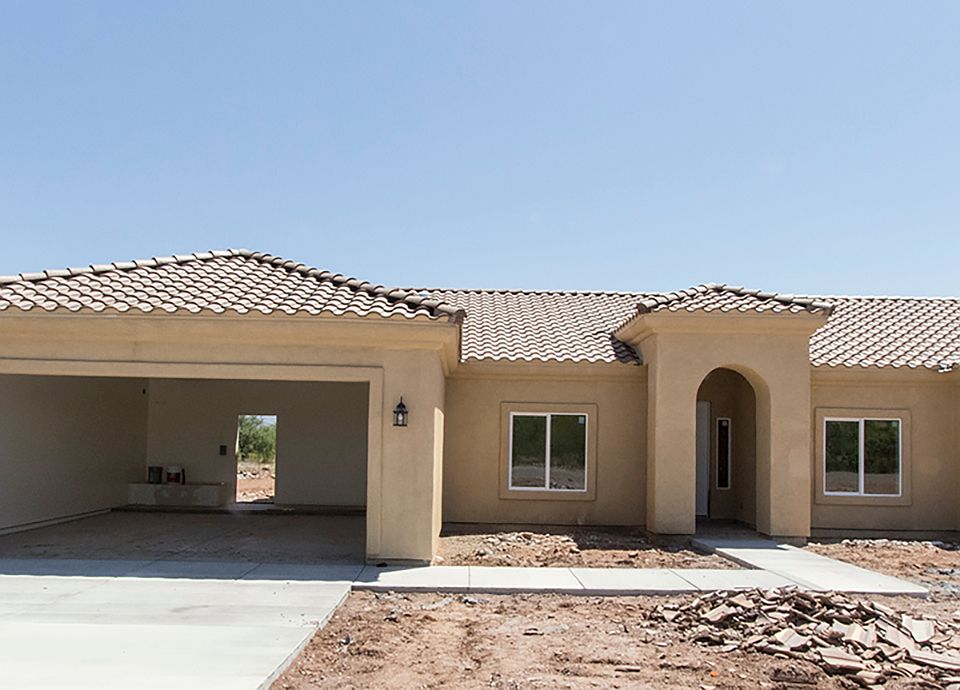 New construction 4 bedroom home with views of the nearby mountain ranges. This open floor plan offers spacious bedrooms, custom built kitchen with stainless steel appliances, granite counters-tops, ceramic tile floors, upgraded light and plumbing fixtures, bay window, roof tile and a large rear yard. Priced to sell!