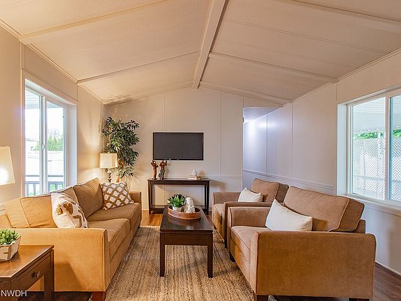 Open, airy floor plan with vaulted ceilings and a neutral, cozy palette. Newly renovated 1991 Marlette full of desirable updates, including walk-in jetted tub. Enjoy a spacious covered front porch and low maintenance yard. 8x8 storage shed. Located in Briarwood 55+ Park with low space rent of only $640/month.