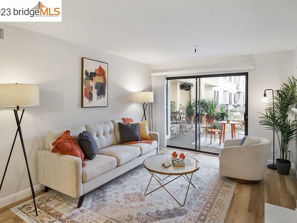 Welcome home to this beautifully updated & very affordable ground-floor unit w/ an open floor plan located in charming downtown San Leandro. Just 2 blocks from BART and restaurants, grocery, bakery, pharmacy, coffee shops & more w/ a walk score of 94! A commuter's paradise – only 24 minutes on BART to downtown SF, & easy freeway access to 880 and 580. Features include gorgeous new floors & carpets, updated kitchen & lighting, a spacious living room w/ fireplace, bedroom w/ walk-in closet, & an outdoor patio. The updated kitchen includes new quartz countertops, refinished cabinets, new stainless steel stove and dishwasher, & a new 30-bottle beverage/wine fridge. Additional features include a convenient breakfast bar, in-unit stacked washer & dryer, two separate bathroom sinks, and a dedicated parking space in an underground gated garage w/ elevator access. HOA dues include use of the clubhouse w/ outdoor pool, indoor jacuzzi, & dual-level exercise facility, plus water, trash, etc. Great as an owner-occupied purchase or as an investment! Browse the 3D walk-through virtual tour.