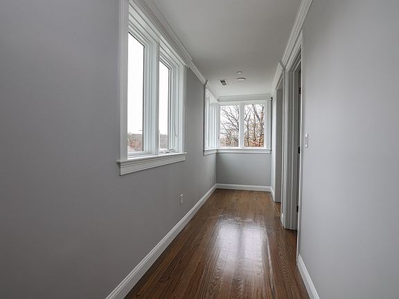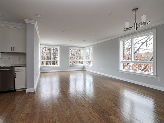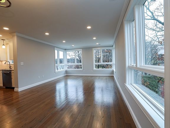 Walls of windows overlooking the neighborhood and the start of the Arnold Arboretum in the living and dining area that has a certain energy and vibe, a feeling reminiscent of Frank Lloyd Wright's work and crafted to feel part of the environment. New construction at the nexus of Roslindale, West Roxbury & Jamaica Plain with incredible build quality using the finest materials. Hardwood floors stained a rich warm color, custom millwork moldings, intricate tile work. Spacious entry hall and two perfectly situated and separate bedrooms including the principal suite with a private bath, walk-in shower & double closets. Kitchen with multiple windows, chef-inspired stainless steel appliances with 5 burner gas range, and cabinets outfitted with thoughtful upgrades. Efficient gas heating, central air, in-unit laundry, heated garage parking, separate storage room. Filled with natural light. Just a short distance to Forest Hills, Roslindale Village, and the commuter rail.