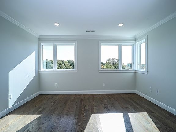 The areas newest building located at the nexus of Roslindale, West Roxbury and Jamaica Plain! Elevator access from the garage brings residents to this top floor unit with corner exposure flooded with natural sunlight and treetop views. A spacious open living and dining room area have crown molding and richly stained hardwood floors. A modern take on the galley kitchen has a chef inspired appliance package including 5 burner gas range, cabinets nicely outfitted with pull outs, and stone counters with warm tones topped by a stylish tile backsplash. The contemporary finishes throughout retain a classic and timeless feel! Unit amenities & features include: energy efficient heating/cooling and hot water, in-unit laundry, principal suite with private bath that has walk-in shower, great closet space, private storage room off the heated garage, and much more. Perfectly located close to commuter rail and the Arboretum! Easy access to highways and medical area, along with food and supplies.