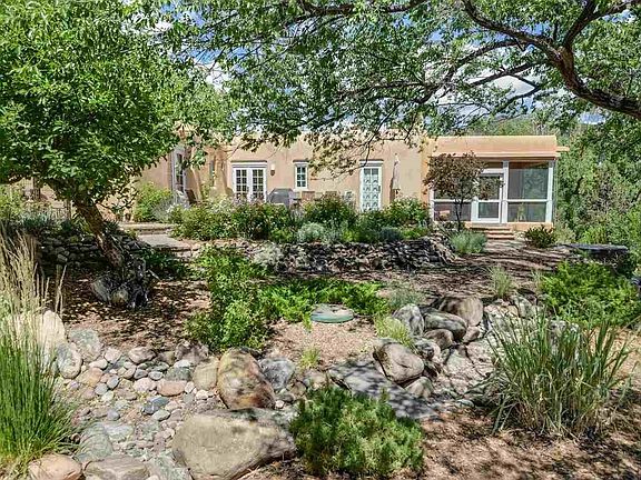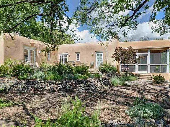 Sky and earth lovingly meet by the peaceful waters of both the Santa Fe River & the Acequia de la Muralla. This adobe and frame masterpiece has been carefully remodeled and enlarged to embrace modern comforts and Pueblo design while still accenting the core touches of the original 1930's home. On over 1 acre with riparian/wooded views, landscaped gardens, the Cerro Gordo Hills and Armijo Park, the home has 4 bedrooms, 2-3/4 baths, 6 Kiva wood burning fireplaces, a hot tub, as well as a separate, oversized 2-car garage (plumbed for water and gas) with additional storage room. Hacienda styled, the center courtyard opens up to the Trey Jordan designed entertaining/living room space with view bancos and windows, a bar area with a large walnut table and a screened porch perfect for al fresco eating. The rest of the home keeps traditional touches of lightness throughout with divided light glass French doors, vigas and latillas, warm plaster walls and hardwood flooring. The French Country inspired kitchen is open and bright and includes all chefs' amenities. A private well, as well as City water service the landscaping and home. This special property has many outdoor view decks and entertaining spaces which invoke a sense of peace and tranquility for those seeking a sacred space in Santa Fe.Unfurnished - Long Term (1 Year Lease) is Required at $3,000 a month plus Utilities.Amenities:1 Landscaped Acre with Access to the Santa Fe River2 Car Garage6 FireplacesPatios with ViewsEnclosed Deck/SunroomHot Tub!