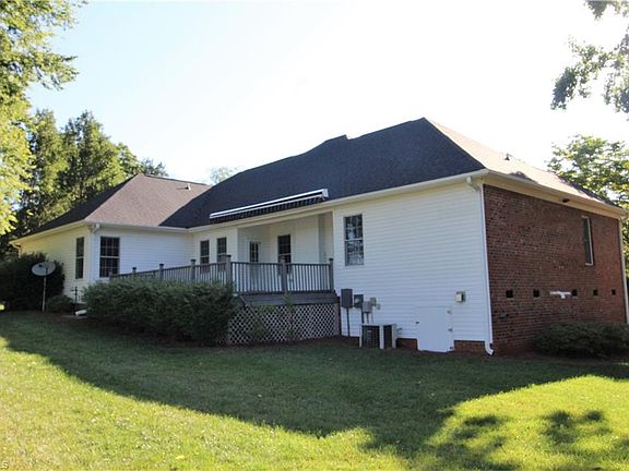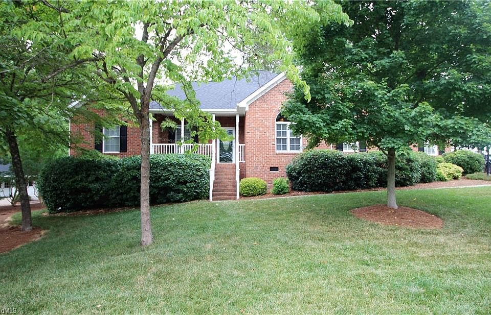 WESTON SHORES in High Point! Located on cul de sac. Home backs up to pasture for a private setting. Split bedroom plan. Kitchen updated in 2021 with quartz countertops, tile backsplash, and cabinets. Stainless Steel Appliances. Recently refinished hardwood floors. Crown molding throughout. Primary bath has granite countertops and tile flooring. Second bath has quartz countertops. Rear deck is Trek decking and has Retractable awning. New Roof 2021. Large, charming storage building with front porch is wired.