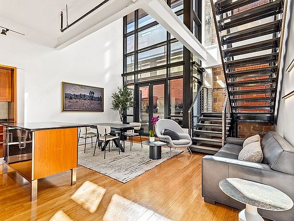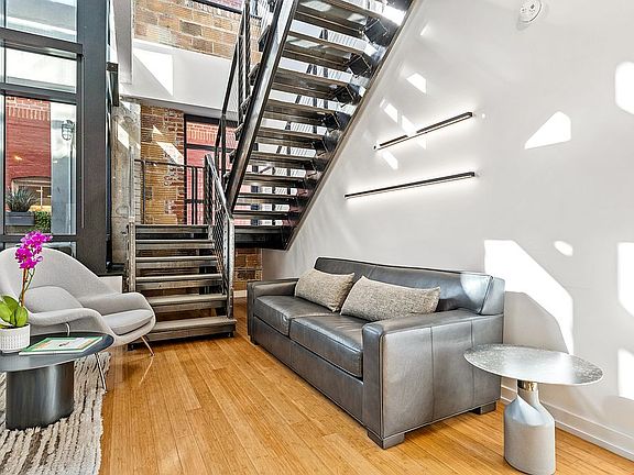Expansive Industrial Loft ; 1 Bed ; 1 Den ; 1.5 Bath ; 1,100 Sf ; 1 Private Balcony ; 1 Parking Space ; Building: Boutique Building, 37 Units, Shared Concierge, Built in 2006 by Metropolis, Common Rooftop Deck, Elevator ; Unit: 22 Ft. Wall of Windows w/ Lots of Natural Light, Automatic Blackout Roller Shades, Southern Exposure, Exposed Beams, Concrete & Duct Work, Industrial Track Lighting, Lofted Owner's Suite w/ Walk-In Closet, Large Lofted Den/Guest Bedroom, Iron & Cable Stair Railings, Bamboo Hardwood Flooring, Carpeted Bedrooms & Stairs, Plenty of Storage Throughout, Powder Room, Washer & Dryer ; Kitchen: Kitchen Aid Stainless Steel Appliances, Scavolini Cabinetry & Kitchen Island w/ Seating for 2, Polaris White Glass Tile Backsplash, Angola Black Granite Counter Tops, Bosch Full Size Dishwasher, Gas Range ; Baths: Glass Enclosed Shower, 2 Mirrored Medicine Cabinets in Owner's Suite, Glass Tile Vanity Backsplash, Scavolini Vanities w/ Vessel Sinks & Storage, Water Closet in Owner's Suite, Tile Flooring, Toto Toilets
