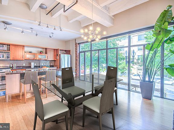 Price improvement this week - OPEN SUNDAY 12:00-2:00. Amazing loft condo in the heart of the 14th Street Corridor at 1400 Church St NW. This is a true loft with exposed brick in the living space, high 13 foot ceilings, floor to ceiling windows for tons of light, and bamboo floors throughout condo. Tons of space checking in at 1,153 square feet. This is an entertainers dream condo with so much living space open in a huge room. Kitchen has granite and stainless. 2nd Bedroom has a walk-in closet and full bath. Primary bedroom has a wall of windows, space large enough for a king bed, walk-in closet and full bath. Great closet space in the foyer too. Washer and Dryer in unit, one garage parking space conveys. Make this your new home!
