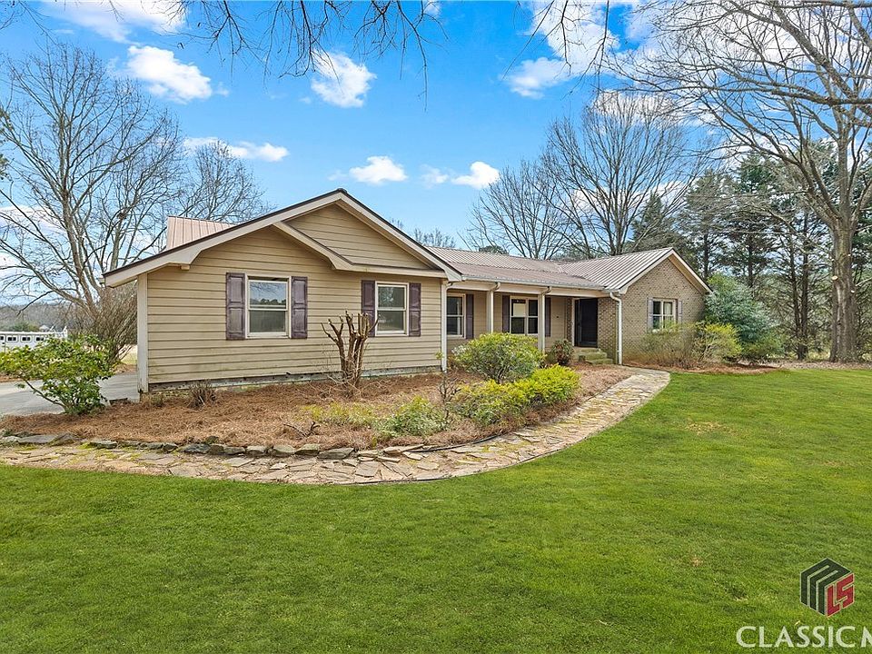 Can you say four-sided brick ranch + finished basement + equestrian capabilities in one of North Oconee’s most coveted areas? This 5-acre estate is loaded with tremendous upside and features hardwood/tile flooring throughout, vaulted ceiling family room w/ stone-faced wood-burning fireplace, 2 BR's on main level, and a covered front porch to take in those quintessential scenic southern backdrops. The spacious kitchen boasts custom cabinetry, stainless steel appliances, and a well-designed layout perfect for entertaining. Owner's suite enhanced with custom-built closet system for all your storage needs, while the terrace level offers additional living space with 1 BR/1 BA, plus private access to a covered patio—ideal for guests or extra privacy. Step outside to the oversized, multi-level rear deck, where you’ll find your own equestrian haven! This property is ready for your horses, featuring an open ring, horse corral, and a fenced-in field perfect for livestock or horses. The 3-stable, 32x38 horse barn with lean-to, along with a 20x20 metal shed and carport, provide ample space for all your outdoor equipment, tools, and animals. This is a rare, tremendous opportunity to make this your own, all within the award-winning North Oconee school district, annually recognized as the top-rated school system in Georgia. Plus, you're just minutes from major highways, 10 minutes to Prince Avenue Christian School, Stripling's, Butler's Crossing, and only 20 minutes from Downtown Athens—making commuting and entertainment a breeze. Don’t miss the chance to make this one-of-a-kind estate your own. Saddle up and trot over to preview this exceptional homestead today!
