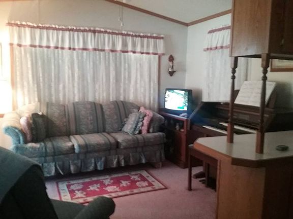 PENDING SALE - 1997 12 x 34 park model with carport, screened room, large nice kitchen, utility room with washer & dryer, 2018 roof, new screens, nice large yard, golf cart, fully furnished including queen sofa bed, TV & antenna, linens, and everything needed for kitchen. Organ not included but can be purchased for $500. Priced at $16,000. This is a Christian community. Children & pets are welcome. Please visit our website at orangeblossompark.com for more info on our park and other homes for sale.