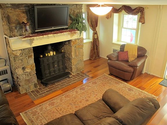 In a park like setting this house is the perfect spot for relaxing or hitting the trails. There are 2 bedrooms on the second floor and a converted attic can be used as a 3rd bedroom or office area. Master bedroom has a second floor porch and sun room attached as well as a gas fireplace that can be used for ambiance or for warming up a cool evening. The main level has a living room with a walk in fireplace with a 1700's fireplace insert for cool evenings. A dining room kitchen and 1/2 bath The kitchen was updated in 2006 with radiant floors, granite counters and stainless appliances. Outside there is a large pool and paver deck for enjoying the tranquil views and sounds of the nearby Brandywine. For parking there is a carport as well as a detached garage that has a 2 bedroom apartment above for adult children to visit or long stays from friends or family. Ideal for young active families or people looking to downsize and live in a permanent vacation house Bedrooms share second floor bath and there is a 1/2 bath on the first floor Electric was upgraded to 200 amp Public sewer and on site well water gives you the best of both options