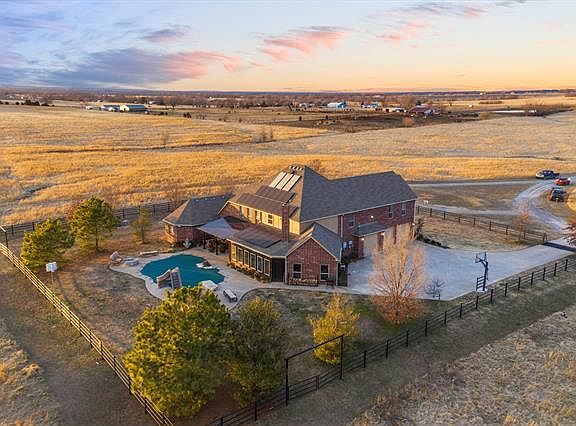Sitting on 80+/- acres this 5500+sqft home boasts 6 bed/6 bath, 2 living, 3 fireplace, theatre room, large eat-in kitchen/living/dining & outdoor entertaining setup complete w/ inground pool, gazebo, firepit. Geothermal heat & grid-tie solar panels assist in energy efficiency. With an extensive weed/fert program this 80 acres produces est 3-4 round bales p/acre and premium grazing for livestock. Option for 120 acres, 3500sqft shop/living, barn/pens, working interest gas well or 5 acres & house.