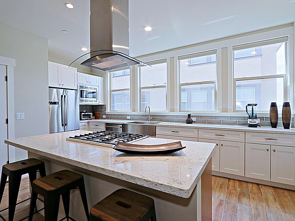 **SEE IT THIS WEEKEND!** Better than NEW! Welcome to ''The Mason'' - A premier 16th St & Bethany Home location, minutes to some of the best uptown restaurants & cafes. Nearly new Luxury Townhome with Frank Lloyd Wright inspired exterior architecture & detail. North/south premium end unit with two balconies & urban, mountain & city views. Features include 2019 installed wood look tile flooring, a spacious sun-drenched island kitchen with quartz countertops, pantry, high end SS appliances, gas range & farm house sink. Open concept living area with generous windows & custom window treatments. Huge master suite with mountain views! Private first floor suite with walk-in closet. 9' ceilings throughout, attached 2 car garage, all soft close cabinet drawers & doors. Heated community pool.