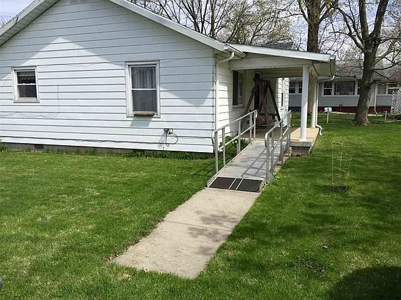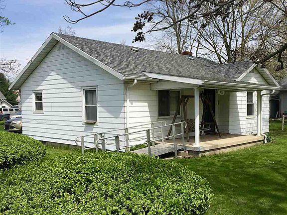 This lovingly maintained 2 bedroom, 1 bathroom home on a corner lot is cute as a button! Walk through the front door from the covered front porch and you'll be in the huge living room with large picture window. Move into the eat-in kitchen with plenty of storage and counter space. The 2 bedrooms have hardwood floors and the full bathroom is nicely updated! There are also hardwood floors under the carpet in the living room. There's a large 11' X 17' laundry room/mechanical room with plenty of extra space and with a walk-up attic above it for more storage- make it into whatever you choose! A new roof was put on in 2014, the home has vinyl windows, paved driveway, an aluminum wheelchair ramp going up to the front porch, and a 10' X 12' shed in the backyard. The corner lot with .3 acres gives you plenty of room to play or build a garage!