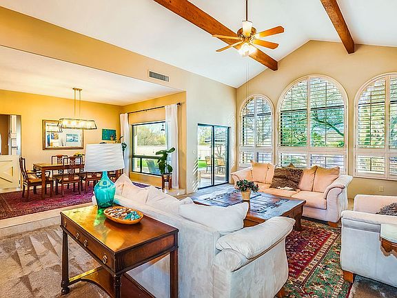 Showings begin 3-25. Owner/agent Fantastic opportunity in the coveted Shadow Hills Estates. Architecturally and aesthetically pleasing inside and out. Interior offers generous living spaces with dramatic wall of windows and plantation shutters throughout, vaulted beamed ceilings, 2 Beehive fireplaces, and ample living space. Ideal master suite features fireplace and access to the backyard. Spacious master bath with dual vanity, garden tub and separate shower plus a walk-in closet. Resort style backyard offers separate entertaining areas including separate Ramada, expansive covered patio and refreshing pool. You will love the mature landscaping including citrus trees, mesquite & decorative areas. Over-sized 2 car garages with work bench and separate storage.