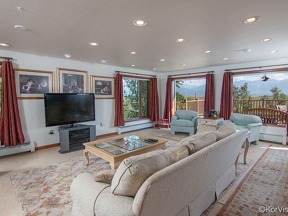 Lovely view home on 7.23 acres in an exclusive, gated entry. Pioneer Peak, wildlife refuge, lakes and inlet views to die for. Huge 1,500 sf garage/shop that will fit up to 6 cars. Open concept home with indescribable views! Lots of masonry detail throughout the property (house, gates and fencing). Plenty of room to expand.