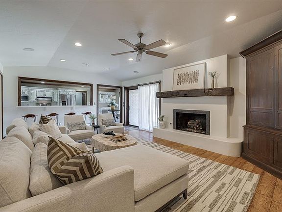 **MULTIPLE OFFER NOTICE - Highest and best due Monday, 4/8 at 10am CST** Drenched in sunshine and ready for summertime! Situated on just over half an acre, 1400 Eagle Drive has both leisure and convenience! The perfect floor plan: two primary suites on opposite sides of the house, two living areas, a beautiful fireplace, two dining areas and two additional oversized bedrooms featuring new carpet and a shared bathroom. The main primary suite beckons with French doors, bamboo sinks, jacuzzi tub, and sliding pocket doors to the walk-in closet. The second primary suite offers a separate private side entrance which leads to a kitchenette and shared laundry access perfect for multigenerational living or a true home office. Outdoors you'll love the in-ground pool, basketball court, three patios and raised slate garden bed. An active water well connects to the sprinkler system for year-round free water. Indoors, enjoy a brand new farm sink, disposal, and wine fridge in the kitchen. You'll also love the recessed lighting, hand-distressed cabinetry, oak shiplap ceilings, and hand-scraped wood flooring. Pella windows and doors (some with plantation shutters), solid wood cabinetry in the kitchen and wiring for sound both indoors and out are a few perks worth noting. Nestled among majestic oaks in East Edmond's Kickingbird Estates, an established neighborhood with sidewalks for biking or strolling, this neighborhood is directly across the street from the newly renovated public Kickingbird Golf Course and Pickleball Center and is less than 2 miles from the University of Central Oklahoma, Francis Tuttle Technology Center, and Edmond Public Schools. You'll also enjoy easy access to I-35 without the hassle of central Edmond traffic plus shopping, dining and recreation within just a few minutes. Don't miss out on this opportunity to live in luxury and convenience in Edmond!