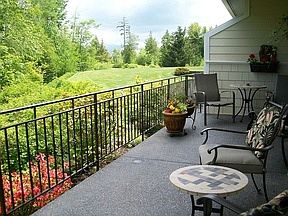 1 level condo with 2 bedroom plus den with built in desk & cabinets. 2.5 baths, master bath w/double sink, soaking tub & walk in shower, master bedroom w/access to patio. Gorgeous low maintenance home that opens to great room w/high ceiling, wood wrapped windows, granite in lrg kitchen & dining w/sliding door to a private patio for your morning coffee and enjoy nature. Truly a home with all the comforts! Large 2 car garage and spacious driveway. In beautiful Eaglemont golf course community!