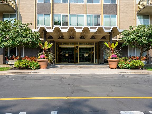 Sutton Park on East Avenue puts you RIGHT where you need to be: minutes from downtown, a short walk to shopping/dining/theater/museums and THE PERFECT location for easy commuting to wherever you need to be! If you enjoy walking/biking/running, you'll love it here! The Park Avenue neighborhood is literally around the corner! This fifth floor unit has 2 beds/1.5 baths and is tastefully done-it just awaits your personal design touches! The spacious living/dining room space affords flexibility for furniture arrangements, and the Acacia engineered flooring adds style and warmth throughout! Custom roller binds here on the newer low E glass windows/glass sliding doors! The updated kitchen is stylish and offers loads of cabinet space, under cabinet lighting, roll out shelving, granite counters and all appliances STAY! Relax on the patio and enjoy the beauty that surrounds you here-the glass sliding door and ALL windows throughout have been replaced-a rarity in this building, but a nice upgrade (13K) that ensures efficiency and ease of use! Primary bedroom has en suite bathroom with walk in shower and glass surround. Windows in primary bedroom have custom roller blinds that are dual: one for room shading, another for room darkening. The updated half bath has stacked washer/dryer unit that STAYS! 2nd bedroom is roomy and has ample closet space. This unit has a coat closet, a utility/pantry closet and a linen closet-you also have storage in the lower level of the building. Monthly HOA includes heating/cooling/gas/electricity/water/garbage-the three HVAC units in this condo have been replaced (7K) with HE Trane convectors! This secured building has a doorperson from 8am-10pm daily and the ease and safety of being able to park in the attached, secured parking garage is PRICELESS! No more brushing snow or dashing raindrops! So many benefits to living here at Sutton Park!