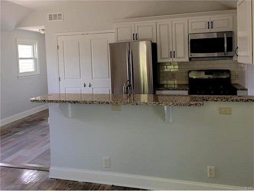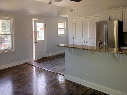 Completely renovated and very modern single home on a quiet corner in charming Hellertown Borough. It features a lovely open concept livingroom and kitchen area with large pantry and powder room for guests. The large master bedroom is flanked by a huge walk-in closet and a Jack & Jill bathroom. One additional bedroom sits on the main floor. The basement features a large family room or may be used as a bedroom if needed and includes an additional powder room and a very large storage and laundry area. Also available is one bay of a detached garage for an additional $150 per month offering parking and storage. Tenant pays all utilities and is responsible for lawn care. Credit & Background check required with rental application. No pets permitted. No smoking.