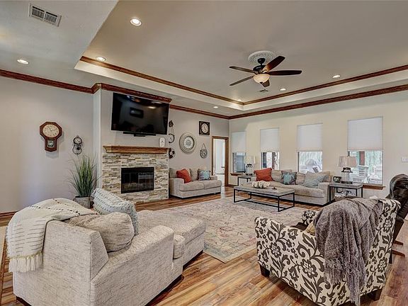 This meticulously maintained home, nestled on just over an acre and a half (mol), is a testament to pride of ownership. As you step inside, an open living area welcomes you, featuring a central gas fireplace that adds warmth and character. The kitchen is a chef's delight, offering a large breakfast bar, updated appliances, and an island for convenience.For those who enjoy entertaining, the formal dining area is ideal. The master bedroom is separated from the secondary bedrooms. It boasts a spacious layout with two separate closets that seamlessly lead into the master bathroom.The secondary bedrooms are generously sized, providing ample storage. But it's the outdoor living space that truly shines. The patio, complete with a pergola and electric screens, offers shade and comfort, creating the perfect spot for relaxation.