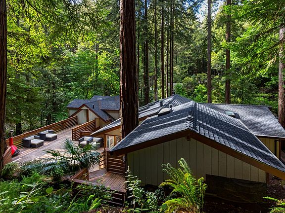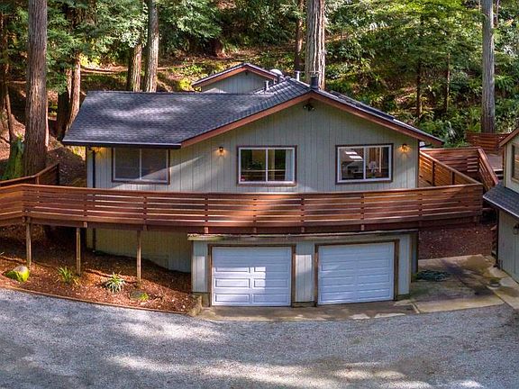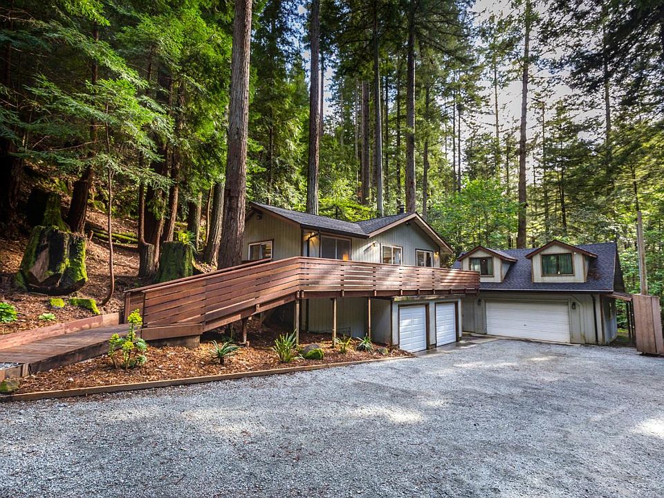 OPEN HOUSE SAT/SUN 10:00AM - 3:00PM - Private Storybook setting with the quintessential tree swing in the Redwoods yet plenty of sun. Upgrades completed with permits. Newer: Roof & Gutters. 200 Amp Service, electrical and lighting, water heater w/recirculating pump, Windows/Skylights, 3/4 inch Hardwood Floors, Kit. Cabinetry w/ lighting, Quartz Counter Tops w/large Waterfall style Island & Stainless appliances, incl. Built-in Convection Oven Combo, beverage cooler, & more. Hard-wired Security System, Nest thermostat, 2500 gal. water tank w/ Ozone filtration-purification. Large deck for BBQs & entertaining. 4 car garage (2 attached-2 det.) Tons of parking, huge permitted finished storage room over the det. garage. 4.5 miles from the Corralitos Market & 10 min. to Hwy 1. Do not take Summit Rd from Hwy 17 (GPS routes incorrectly). Instead: From Silicon Valley: Take 17 South, to Hwy 1 South, exit Freedom Blvd. to the Left, Left on Corralitos Rd. to 1400 Eureka Cyn.