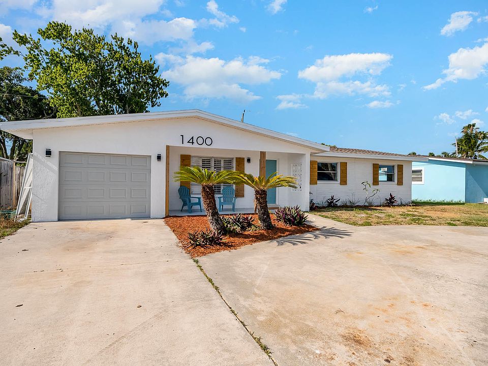 *NEW ROOF* to be installed before closing. Welcome to this beautifully renovated house! As soon as you step inside, you'll be greeted by its open floor plan that instantly makes you feel welcome. The kitchen has been completely redone with new cabinets, quartz counter top and appliances. The dinning area features a sliding glass door that leads you to the covered porch where you can enjoy the river breeze sipping your morning coffee or enjoying a relaxing evening. The bathrooms have been redone, new garage door and the location is great. 10 min to Cocoa Beach, 528 and close by to all shopping and restaurants. This house is nested on a circle driveway with plenty of parking space. Whether you are looking for a place to call home or investment opportunity this house has it all. Don't miss out!
