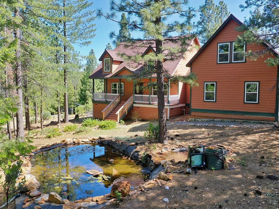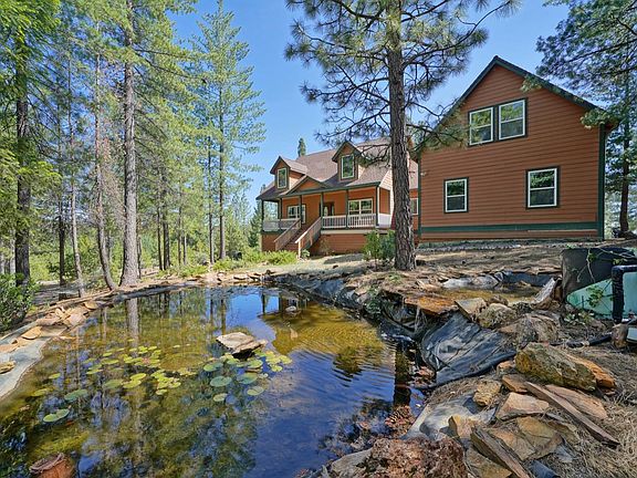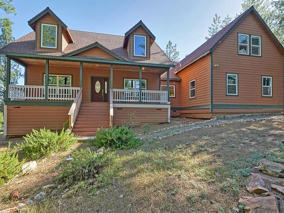 If you're looking for a dream retreat in the country, this is it! Situated on 20 private acres next to a national forest but under 15 mins from groceries, gas & pharmacy, this custom home features breathtaking views from one of several decks or from an interior blessed with soaring ceilings & walls of windows. A coy pond greets you as you approach the covered front porch & entry. The primary bedroom suite is on the opposite side of the house from 3 other main-floor bedrooms. Family and guests will love to gather in the spacious, light-filled open plan living room, kitchen, dining area & sun room that offer stunning vistas from every angle. A large bonus room is at the top of a staircase & adjacent to a 5th bedroom. The whole house fan & central a/c keep this beautiful home cool in the summer, but you'll appreciate the gas-fueled fireplace when snow coats the forest. There's plenty of room for toys in the over-sized 2 car garage & outbuildings, & room to roam in this wooded paradise.