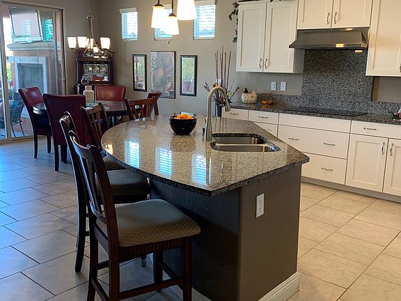 Beautiful two bedroom, two bathroom, patio style home for sale in Sun City Mesquite, Nevada. Surrounded by lovely desert views and the Conestoga golf course, this 1600 sq ft home is in a fabulous Del Web (55 & over) community and priced to sell. This open floor plan has large windows, and tile & laminate flooring throughout. Upgraded white cabinets, granite counters, and induction stove top create a beautiful kitchen, dining and entertainment area. The master bedroom comes with a large bay window, walk in closet, bathroom with walk-in shower, double sink and lots of counter space and cabinets. For more privacy, the guest room is on the opposite corner of the house and next to the second bathroom. Large sliding glass doors off the dining room open to a spacious (East facing) outdoor living area. You will marvel at the incredible sunrises in the mornings and a moon rise every night! This patio includes a built-in fire place with a large screen television overhead and an outdoor kitchen with built-in grill, refrigerator, and tile countertop. The Extended two car garage is equipped with an air conditioner/heat pump, abundant cabinet storage, and an extra bonus storage room. Other amenities include; Faux wood white blinds throughout the house. Ceiling fans Entertainment wall Kitchen island with sink Induction stove top Stainless steel appliances Pantry Covered patio/extended patio Garage storage cabinets Gated garbage enclosure Oversized propane tank Desert landscape Partial grass in the back yard Sprinkler and drip system Awesome Neighbors!! Enjoy the Del Webb lifestyle, with unlimited activities and social opportunities all within a couple of blocks. Including, but not limited to, pickle ball, tennis, bocce ball, 18-hole grass putting course, indoor pool, outdoor pool, fitness center, indoor track, ping pong, pool tables, library, and clubs for everything you can imagine. Some of the clubs include, bridge, spades, poker, pottery, glass, beading, dancing, yoga, Boot Camp, tai chi, water aerobics, wine club, RV club, and a social club. This is not an inclusive list.
