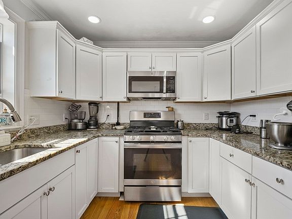 Luxury Townhome in Mill City Crossing Community. This meticulously maintained 3 bedroom, 1.5 bath tri-level Townhouse feature an open concept kitchen with upgraded energy efficient stainless appliances w/ natural-gas range, granite countertops, ceramic tile backsplash, abundance of cabinetry, a formal dining area and exterior access to the rear deck through a french glass door. The spacious fireplaced living room features oversized trim, crown molding, recessed lighting and hardwood floors throughout. The third floor has two generously sized bedrooms, the primary bedroom includes his and hers french door closets, laundry area, a common full bath w/ granite countertops and private attic access for additional storage. Built in 2021. Great commuter location! Conveniently close to Chelmsford, Billerica, MBTA, UMass Lowell, Shopping, Restaurants, Downtown, the Lowell connector and Major Routes 3, 3A, 110, 113, 225, 4 & 495