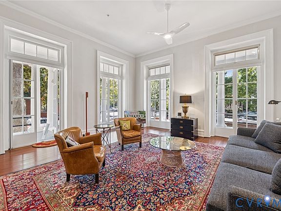 Welcome to 1400 Grove Avenue in the heart of the historic Fan District. This highly coveted 1st floor unit is gorgeous and flooded with natural light; 6 sets of French Doors open onto the HUGE wrap-around porch. 1BR/1Bath unit featuring hardwood floors, 11+ foot ceilings, a handsome(gas) fireplace with original historic mantel and gorgeous wood moldings. Charming open concept Living/Dining/Kitchen. The kitchen has been updated w/granite counters, travertine marble backsplash, cherry cabinets, SS appliances and counter seating. The Primary Bedroom is a cozy retreat offering a charming window seat, high ceilings, hardwood floors and lots of storage.Updated Full Bath with marble flooring. In-unit stacked laundry. This building has indoor and outdoor common areas, front door security system, extra basement storage, ONE dedicated off-street parking(Space #2) and is pet friendly! Walking distance to VCU, Downtown, dozens of cafes and restaurants, VMFA, Byrd Park and Carytown. Live, work and play where everyone wants to be!