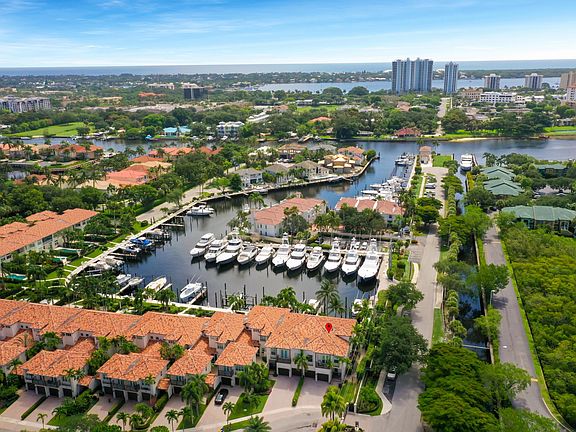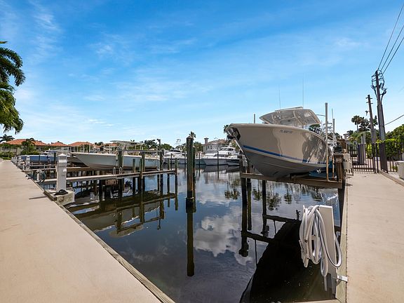 Amazing water and multi million dollar yacht views! Living the Dream in your Private Luxury Waterfront Oasis! Gated Intracoastal Community with deep water 45' dock/slip directly behind your home, including 16,000 LBS Topless Boat lift, No Fixed Bridges, Conveniently located just minutes to fine dining, shopping, entertainment, golf, private schools, colleges, and attractions! Renovated 3 br, plus Media (4th Br) SE End unit w/side yard, pool & spa with covered Lanai, built-in grill, paver brick patio/gorgeous private manicured landscaped area for entertaining. Bright open floor plan with DR and GR w/wet bar, wine chiller, and ice maker! Awesome kitchen overlooking pool and water, Nat Gas cooktop, hood, lunch bar, Granit C-tops, Elegant Primary Suite wood flr, Luxe bath, balcony w/view,+