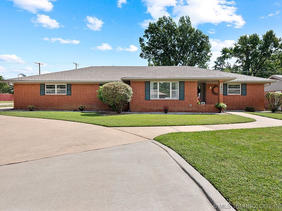 Mint condition one story home on a large corner lot with workshop! Circular driveway and privacy fencing. 3 living areas including living room, den and sunroom. Cozy gas log fireplace in the den with wall to wall bookshelves & a new sliding glass door to the oversized patio. Formal and informal dining areas. Kitchen is open to the den and has stainless appliances. Refrigerator is negotiable. Primary suite offers a full bath & two closets. Secondary bedrooms with walk in closets and a shared full bath. Lots of built in shelving and storage throughout. Hot tub in sunroom with a great view of the private back yard. Laundry room with storage & a half bath is next to the kitchen. French drain with electric pump. Patio for entertaining and more! Close to Ranch Heights Elementary.