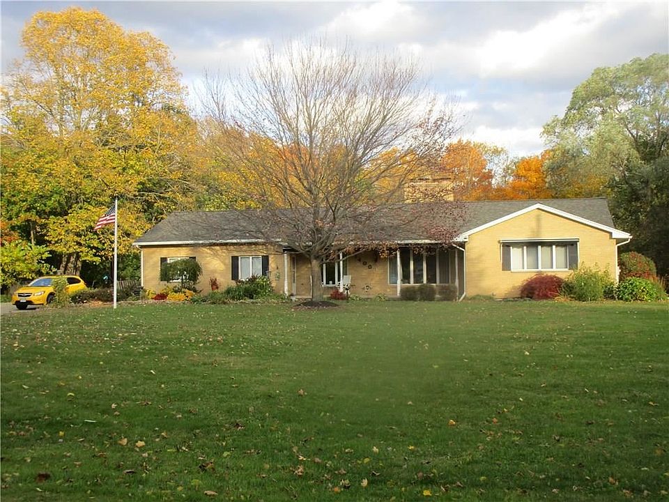 PICTURESQUE 1 acre setting on quiet street! Sprawling 5 bdrm ranch with in-law possibility. 3 full baths, hardwoods thruout, first floor laundry. Formal liv rm and fam rm share see thru fireplace...Kitchen/family rm set-up. HUGE walkout bsmt (has garage door) with additional garage space and work space (second driveway to gain access) - perfect for car buff! Deck overlooks wooded lot. Newer roof and mechanics,basement waterproofed.