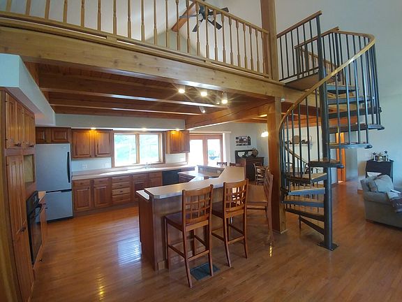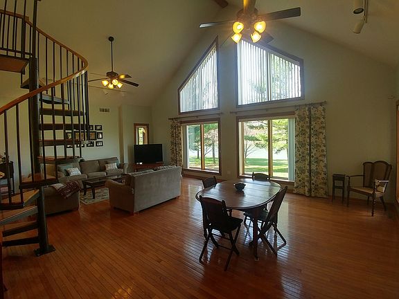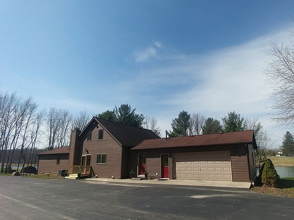 This STUNNING Contemporary Custom Built Ranch sits on 37 private wooded acres w/horse & hiking trails. First fl living at its finest w/2378sf, 3bedrooms, 3full/2half baths. HUGE A frame great room with Loft overlooking the 4acre spring fed STOCKED pond. NATURAL woodwork of cherry, oak and ash throughout - Sourced right from the property! Beautiful Kitchen w/large island features custom-built wood cabinets & breakfast bar chairs and bench. BONUS ground level walk out basement offers an additional 1600sf finished w/kitchen & bath PLUS *Insulated Drive Thru Barn is 50x56 w/220 power, wood stove and 14' shop door for big toys! 1st fl laundry, backup gen, 2 car garage, a/c. A true Outdoor Enthusiasts DREAM! Approved for Bed & Breakfast! Near snowmobile trls, casino, shopping, wine country.