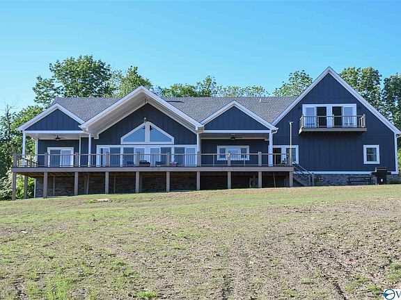 A secluded private retreat with waterfall on 25 acres offers 4 bedroom/4 bath, open floor plan with million dollar bluff view! This outdoor sanctuary was created with relaxation in mind surrounded by natural habitat. Beautiful commercial grade flooring throughout, Family room includes vaulted ceilings, gas fireplace, dining and kitchen with breathtaking Brazilian counter tops & soft close cabinets! Spacious 3 car garage with 220V electric run for car lift or car charge & lots of storage. Home has 4 ton AC unit for main living area & 2 ton for bonus/bedroom upstairs. Home offers many more features, see attached doc. Conveniently located to Huntsville, Scottsboro and Guntersville. A MUST see!
