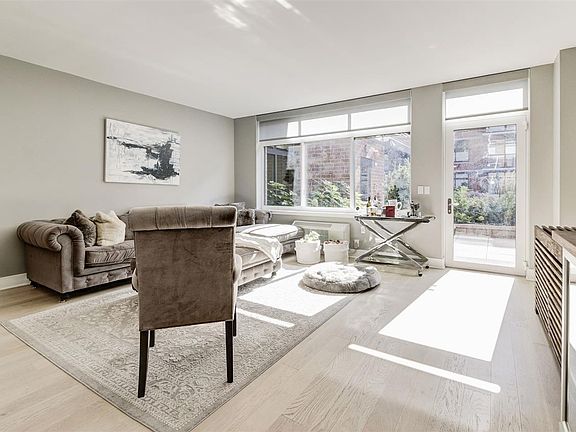 Welcome to this exquisite home in Toll Brothers newest Hoboken building. This home is unique, special, and automated throughout. The open living area spills out onto a 200 SF patio with great light, and landscaped gardens. The living room includes a wine bar, with wine fridge and a butcher block counter. The space includes a large dining area and is perfect for entertaining. The chef's kitchen is large and well designed with quartz counters, backsplash, Bosch and Thermador appliances. The unit features a multitude of upgrades. The den is outfitted with built-in desks, bookshelves, Murphy bed and closets plus an automated privacy shade and a full bath for guests. The den can easily be converted to a 3rd bedroom. In addition, there are 2 large bedrooms & 2 more full baths. The entire home is equipped with Lutron electric shades and drapes. The master bedroom, bath, and nursery include Sonos speakers. All closets are custom designed and an additional closet has been added for maximum storage. Lutron custom light fixtures are throughout unit. Also included is a parking spot on level 2 as well as a storage unit. The building contains the best in resident amenities such as huge resident lounge, gym, game room and swimming pool. 24-hour concierge and shuttle to the PATH, only 2 blocks to NYC ferry. This is a one of a kind home that is not to be missed!